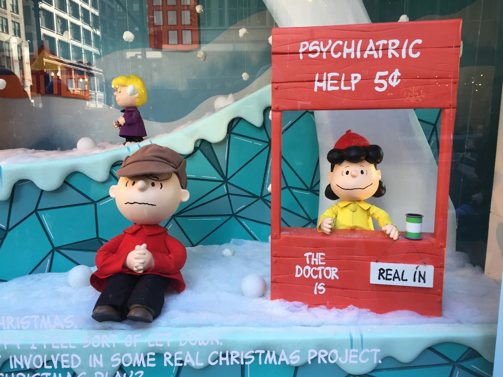 Greetings, Friends. Today I am sharing photos I took last weekend in downtown Chicago. Every year the Macy's Store (formerly Marshall Fields) decorates its windows with beautiful decorations. I have shared only a few of them, and my photos do not do them justice. One of the themes of the windows this year involved the 9 planets. I have only shown "Mars" and "Earth" above. There were also a few Peanuts character scenes, perhaps because of the recent Peanuts movie. I have inserted my favorite above. These windows have been a Chicago Christmas tradition (and tourist attraction) for decades. Each year they are different. I enjoyed having the opportunity to see them this year!